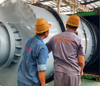 本公司高嶺土回轉(zhuǎn)窯依據(jù)筒體規(guī)格尺寸分為十一個型號,范圍為?1.6×32m-?4×80m,筒體直徑2.2m以上(含2.2m)配輔助傳動,3.0m以上(含3.0m)支撐由三組變?yōu)樗慕M,窯轉(zhuǎn)速0.58-2.85r/min,斜度3.5-4.0%,配套主電機功率18.5KW-355KW,滿足時產(chǎn)2t-20t范圍內(nèi)高嶺土礦產(chǎn)品的煅燒需求。